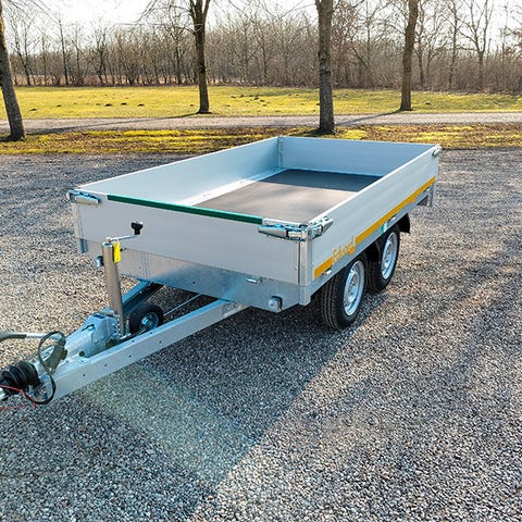 Eduard 2615-20-63-ET-RAMEn stærk og robust boogietrailer med el-tip, ramper og en totalvægt på 2000 kg. Det er en trailer med mange anvendelsesmuligheder. Som vores andre ED2615 modeller er traileren kendetegnet vedStabil v-trækvangeFuldsvejset galvaniseret chassisSider i aluminiumIndvendige surringsøjerAftagelige hjørnestolperSider der kan lægges nedNæsehjulTrailer med el-tip En tiptrailer er et oplagt valg til dig, der skal køre med løs last. Har du brug for en boogietrailer til at køre med større mængder grus, sand, sten eller tilsvarende, skal du vælge en tiptrailer. Med en tiptrailer kan du let få læsset af uden det kræver det store arbejde. Eduard 2615-20-63-ET-RAM har 3-leds cylinder og bagtip med elektrisk pumpe.Ramper indbygget under ladUd over el-tip har denne trailer også ramper indbygget under lad. Med ramper har du mulighed for at bruge traileren til transport af maskiner. Med den indbyggede sliske til ramper, slipper du for at bruge ladet til opbevaring af ramper under transport.Stort ladLadet på Eduard 2615-20-63 med el-tip og ramper måler indvendigt 256x149 cm. Hjulene er placeret under ladet, så du har mulighed for at udnytte den fulde bredde. Alle hjørnestolper kan tages af og siderne kan lægges ned. Det giver en stor fleksibilitet, når du skal læsse traileren med grus, sand eller sten, da du kan bruge både bredden og længden. Siderne der er i aluminium er 30 cm høje og ladets læssehøjde er 66 cm.Robust og stærk trailerEduard 2615-20-63 med eltip og ramper er et godt valg, hvis du skal køre med tung last. Boogietraileren har to Knott-aksler, der sikrer en god vægtfordeling. En god vægtfordeling giver et godt vejgreb, der giver større køresikkerhed og bedre køreoplevelse. Traileren har en egenvægt på 612 kg og med en totalvægt på 2000 kg, kan du laste helt op til 1388 kg.Husk nummerpladePrisen er ekskl. Nummerplade og nummerpladegebyr til 790 kr. (samme pris som hos SKAT). Vi har både EU- og almindelige nummerplader på lager.Ekstraudstyr til ED2615-20-63-ET-RAMEkstra siderGittersiderFlad presenningHøj presenning, fås i flere højderHvis du er interesseret i ED2615-20-63-ET-RAM kan disse trailere også være noget for digED2615-15-63-ET-RAM Boogietrailer med 13” hjul, ladhøjde på 63 cm og max totalvægt på 1500 kgED2615-20-72-ET-RAM Boogietrailer med 13” hjul, ladhøjde på 70 cm og max totalvægt på 2000 kgED2615-27-63-ET-RAM Boogietrailer med 13” hjul, ladhøjde på 63 cm og max totalvægt på 2700 kg