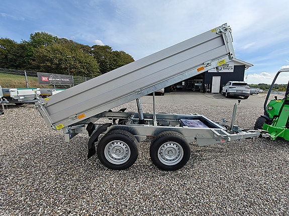Eduard 2615-27-63-ET-RAMEn stærk og robust boogietrailer med ramper, el-tip og en totalvægt på 2700 kg. Det er en trailer med mange anvendelsesmuligheder. Som vores andre ED2615 modeller er traileren kendetegnet vedStabil v-trækvangeFuldsvejset galvaniseret chassisSider i aluminiumIndvendige surringsøjerAftagelige hjørnestolperSider der kan lægges nedNæsehjulTrailer med el-tip En tiptrailer er et oplagt valg til dig, der skal køre med løs last. Skal du køre med grus, sand, sten eller tilsvarende, har du brug for en tiptrailer. Med en tiptrailer kan du let få læsset af uden det kræver det store arbejde. Eduard 2615-27-63-ET-RAM har 3-leds cylinder og bagtip med elektrisk pumpe.Ramper indbygget under ladUd over el-tip har denne trailer også ramper indbygget under lad. Med ramper har du mulighed for at bruge traileren til transport af maskiner. Med den indbyggede sliske til ramper, slipper du for at bruge ladet til opbevaring af ramper under transport.Stort ladLadet på Eduard 2615-27-63-ET-RAM med el-tip og ramper måler indvendigt 256x149 cm. Hjulene er placeret under ladet, så du har mulighed for at udnytte den fulde bredde. Alle hjørnestolper kan tages af og siderne kan lægges ned. Det giver en stor fleksibilitet, når du skal læsse traileren med grus, sand eller sten, da du kan bruge både bredden og længden. Siderne der er i aluminium er 30 cm høje og ladets læssehøjde er 66 cm.Robust og stærk trailerEduard 2615-27-63-ET-RAM et godt valg, hvis du skal køre med tung last. Boogietraileren har to Knott-aksler, der sikrer en god vægtfordeling. En god vægtfordeling giver et godt vejgreb, der giver større køresikkerhed og bedre køreoplevelse. Traileren har en egenvægt på 740 kg og med en totalvægt på 2700 kg, kan du laste helt op til 1960 kg.Husk nummerpladePrisen er ekskl. Nummerplade og nummerpladegebyr til 790 kr. (samme pris som hos SKAT). Vi har både EU- og almindelige nummerplader på lager.Ekstraudstyr til ED2615-27-63-ET-RAMEkstra siderGittersiderFlad presenningHøj presenning, fås i flere højder