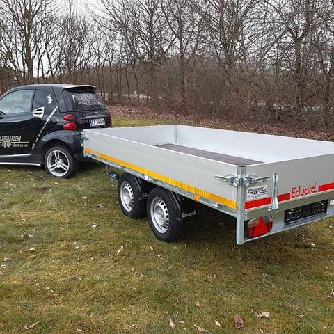 Vægt / Mål : Indvendig :Længde : 310 cmBredde : 160 cmHøjde : 30 cm Alu siderLadhøjde : 63 cmTotalvægt : Max 750/500 kgLastevne : Max 433/183 kgEgenvægt : 317 kgHjulstørrelse: 195/50R13- Aluminiums sider & Løse hjørnestolper- Rigtigt svejset chassi- Alle sider kan nedfælles !- 13 polet stik og baklys - Knott aksler og træk- Ind. og udvendige surringeøjer- Aftagelige hjørnestolper.- Næsehjul - Samme chassis som 2000 kg trailer-Typegodkendte totalvægte: 500 / 750 kg- Uden påløbsbremse !! Nuv. modeller leveres uden gule refleksstriber pga. ny TÜV lovgivning !!- TRAILER BYGGET I BELGIEN
