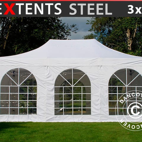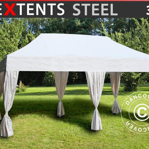 Foldetelt FleXtents Steel 4x4m Hvid, inkl. 4 pyntegardiner