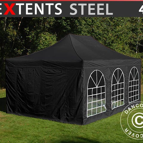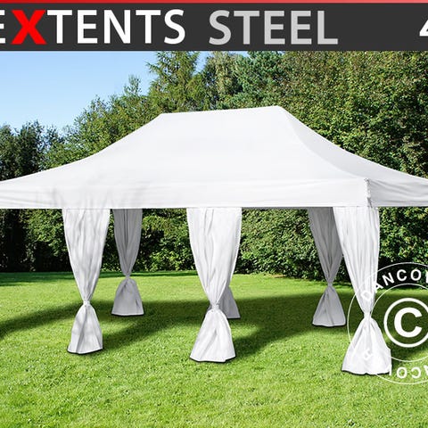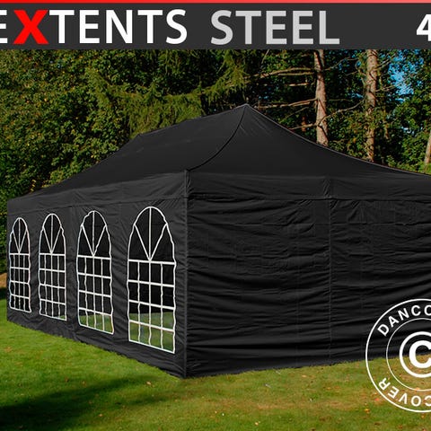 Foldetelt FleXtents Easy up pavillon Steel 4x8m Sort, inkl. 6 pyntegardiner