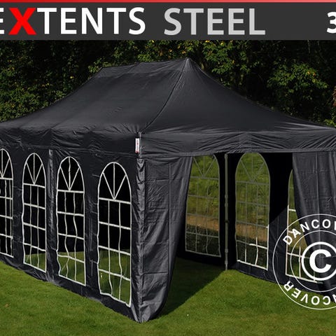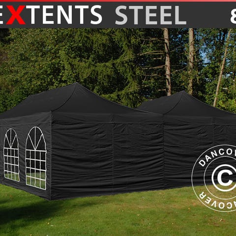 Foldetelt FleXtents Steel 8x6m Sort, inkl. 8 sider