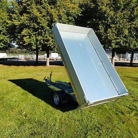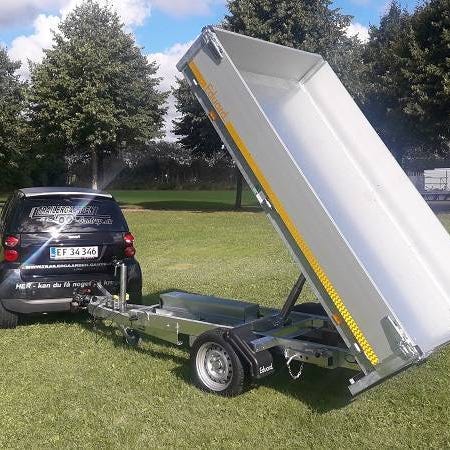 Eduard ED2615-20-72-ET-RAMEn stærk og robust boogietrailer med el-tip, ramper og en totalvægt på 2000 kg. Det er en trailer med mange anvendelsesmuligheder. Som vores andre ED2615 modeller er traileren kendetegnet vedStabil v-trækvangeFuldsvejset galvaniseret chassisSider i aluminiumIndvendige surringsøjerAftagelige hjørnestolperSider der kan lægges nedNæsehjulTrailer med el-tip En tiptrailer er et oplagt valg til dig, der skal køre med løs last. Har du brug for en trailer til at køre med større mængder grus, sand, sten eller tilsvarende, skal du vælge en tiptrailer. Med en tiptrailer kan du let få læsset af uden det kræver det store arbejde. ED2615-20-72-ET-RAM har 3-leds cylinder og bagtip med elektrisk pumpe.Ramper indbygget under ladUd over el-tip har denne trailer også ramper indbygget under lad. Med ramper har du mulighed for at bruge traileren til transport af maskiner. Med den indbyggede sliske til ramper, slipper du for at bruge ladet til opbevaring af ramper under transport.Stort ladLadet på Ed2615-20-72 med el-tip og ramper måler indvendigt 256x149 cm. Hjulene er placeret under ladet, så du har mulighed for at udnytte den fulde bredde. Alle hjørnestolper kan tages af og siderne kan lægges ned. Det giver en stor fleksibilitet, når du skal læsse traileren med grus, sand eller sten, da du kan bruge både bredden og længden. Siderne der er i aluminium er 30 cm høje og ladets læssehøjde er 72 cm.Robust og stærk trailerED2615-20-72-ET-RAM et godt valg, hvis du skal køre med tung last. Boogietraileren har to Knott-aksler, der sikrer en god vægtfordeling. En god vægtfordeling giver et godt vejgreb, der giver større køresikkerhed og bedre køreoplevelse. Traileren har en egenvægt på 666 kg og med en totalvægt på 2000 kg, kan du laste helt op til 1334 kg.Husk nummerpladePrisen er ekskl. Nummerplade og nummerpladegebyr til 790 kr. (samme pris som hos SKAT). Vi har både EU- og almindelige nummerplader på lager.Ekstraudstyr til ED2615-20-72-ET-RAMEkstra siderGittersiderFlad presenningHøj presenning, fås i flere højder