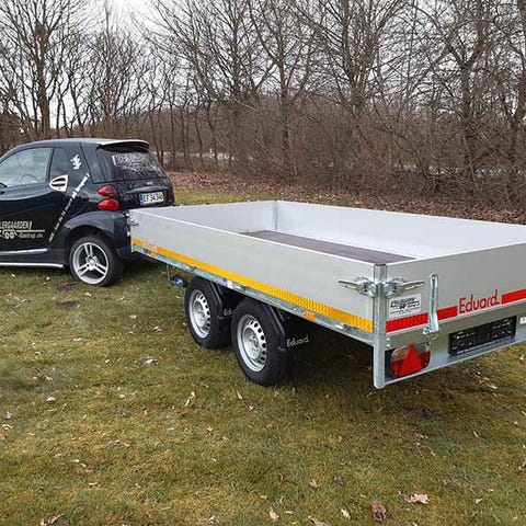 Vægt / Mål :Indvendig :Længde : 306 cmBredde : 153 cmHøjde : 30 cm Alu siderLadhøjde : 70 cmTotalvægt : 750 kgLastevne : 450 kgEgenvægt : 300 kgHjulstørrelse:155R13- Aluminiums sider & Løse hjørnestolper- Rigtigt boltet chassi- Alle sider kan nedfælles !- 13 polet stik og baklys- Knott aksler og træk- 10 indvendige surringeøjer- Aftagelige hjørnestolper.- Næsehjul- Uden påløbsbremse