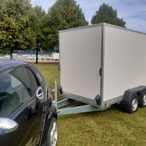 Erhvervsleasing fra kr. 424,- ex. moms. Udbetaling 0,00kr.Vægt / Mål :Indvendig :Længde : 305 cmBredde : 187 cmHøjde : 184 cmLadhøjde : 55 cmTotalbredde : 235 cmTotallængde : 480 cmTotalhøjde : 240 cmTotalvægt : 2700 KgLastevne : 1945 kgEgenvægt : 755 kgHjulstørrelse:165 R13- Incl Næsehjul !- 4 stk. indv. surringsøjer- 15 mm plywood, sider og tag- 13 polet stik og baklys- Hele plader, ingen samlinger i siderne- Alle samlinger med aluskinner ind og udv.- Knott aksler og påløb- Støtteben i bag er ekstra udstyr- Plastskærme i stærk kvalitet - Rustfri stanglås med 2 x nøgle- 2 x Stopkiler- Ekstra udstyr surringsskinner lodret/ vandretLeveringstid kan forekomme- ”Ved foliering af Cargo trailer overtager- foliemontøren ansvaret for trailerens sider”Alle trailer priser er excl. nummerplade & nummerpladegebyrtil kun 790,-( Samme pris som hos SKAT )