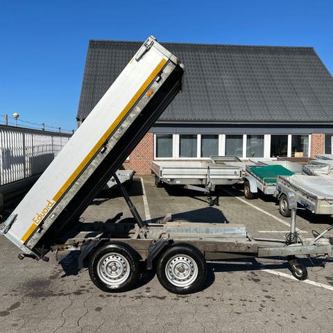 Eduard 2514-20-63 med manuel tipEn robust trailer med manuel tip og en totalvægt på 2000 kg. Eduard 2514-20-63-MT er en trailer med mange anvendelsesmuligheder og som vores andre ED2514 modeller er traileren kendetegnet vedStabil v-trækvangeFuldsvejset galvaniseret chassisSider i aluminiumIndvendige surringsøjerAftagelige hjørnestolperSider der kan lægges nedNæsehjulTrailer med manuel bagtip Eduard 2514-20-63-MT har bagtip der betjenes via en manuel håndpumpe. En tiptrailer med manuel tip er god hvis du skal køre med løs last, da du kan tippe lasten af. En tiptrailer med manuel tip er til dig, der kun skal bruge tipfunktionen en gang i mellem. Du kan som udgangspunkt laste og tippe lige så meget som på en tilsvarende trailer med el-tip, det kræver blot mere arbejde, da tipfunktionen betjenes via en manuel håndpumpe. Skal du bruge tippefunktionen dagligt eller ugentligt, anbefaler vi en trailer med el-tip.Fastsurring af lastSom vores andre trailere fra Eduard kommer ED2514-20-63-MT med indvendige surringsøjer i bunden, der gør det muligt at sikre din last på en sikker og forsvarlig måde. Det er vigtigt at lasten er spændt godt fast, da det kan påvirke trailerens greb på vejen, hvis lasten kan rutsje rundt under kørsel.Husk nummerpladePrisen er ekskl. Nummerplade og nummerpladegebyr til 790 kr. (samme pris som hos SKAT). Vi har både EU- og almindelige nummerplader på lager.Ekstra udstyr til ED2514-20-63-MTEkstra sider 30 cmFlad presenningHøj presenning fås i flere højder