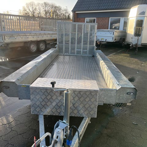 Længde: 480 cmBredde: 180 cmHøjde: 33 cmLadhøjde: 34Totalvægt: 3500 kgLastevne: 2470 kgEgenvægt: 1030 kgHjulstørrelse:195/50R13- 3 x KNOTT Aksler- 130 cm Rampe i fuld bredde - Ladhøjde kun 34 cm- Forstærket 18 mm Finérbund - mulighed for tilkøb i aludørk- Fuldsvejset chassis- Surrringsøjer standard- 13 polet stik og baklys- Næsehjul m. klapautomatik- KNOTT Aksler og træk- Med Påløbsbremse- Trailere til den Professionelle.-Alle trailer priser er excl. nummerplade & nummerpladegebyrtil kun 790,-( Samme pris som hos SKAT )