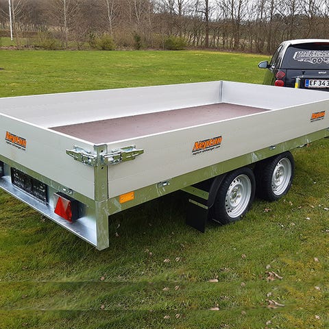 Robust og rummelig trailer til både privat og professionelt brugNeptun Nordica GN242-N20-420-2GN 242 fra Neptun er udviklet med fokus på funktionalitet og slidstyrke. Med en ladstørrelse på 420 × 215 cm og plads til op til 6 europaller er der masser af kapacitet til både byggeopgaver og haveprojekter. Det solide lad er udstyret med forstærkede kanter og bygget på en kraftig undervogn, som gør traileren egnet til krævende opgaver.Designet til praktisk brug og fleksibilitetSiderne er todelte og kan klappes ned eller fjernes helt, hvilket gør det let at læsse og aflæsse – uanset lasten. Den profilerede konstruktion og bagpanel giver ekstra styrke, mens de aftagelige hjørne- og midterstolper tilføjer endnu mere fleksibilitet i brug.Udvalgte specifikationer og funktioner:Solid ramme med 3 tværgående bjælkerMaksimal tilladt vægt: 2.000 kg, med en lasteevne på 1.350 kg10 integrerede surringsøjer for sikker fastgørelse af godsMonteringsknopper til presenning for nem overdækningFordelene ved at vælge denne modelDenne trailer er bygget med AL-KO’s uafhængige affjedringssystem, hvilket sikrer stabil og sikker kørsel – også ved tung last. Den varmgalvaniserede trækvange og slidstærke bundplade i 15 mm skridsikkert krydsfinér gør traileren modstandsdygtig mod vejr og slid. Med AL-KO’s koblings- og bremsesystem får du en tryg transportløsning, der lever op til høje sikkerhedsstandarder.Ideel til tunge og store læsTraileren er monteret med dobbelte aksler og et kraftigt næsehjul, som giver optimal balance og stabilitet. En sidehøjde på 40 cm gør den velegnet til både haveaffald, materialer og andre større emner. Det gør traileren yderst anvendelig i mange forskellige sammenhænge.