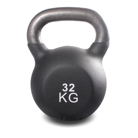 Dejlig lækker 16 kg. kettlebell af støbejern, der er overtrukket med kraftig rød neopren, så den også beskytter gulvet!