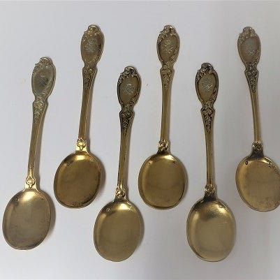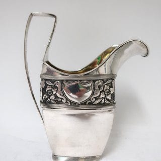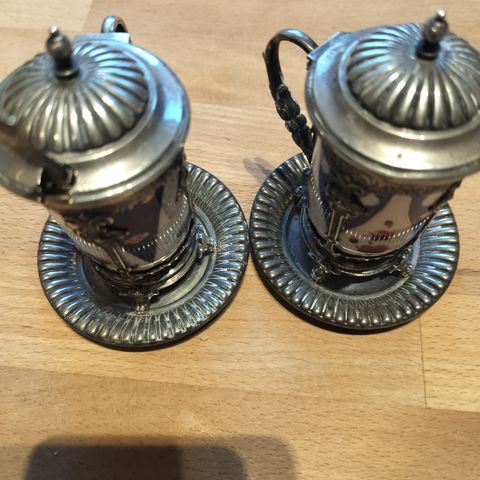 Et par royale sølvtallerkner med gadroneret kant og fane pry