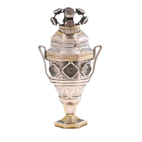 Hovedvandsæg i sølv i form af fisk udført af Berthold Sørensen Rosendahl, 1753-99, Aabenraa