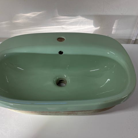Villeroy & Boch porcelænsvask (H: 16,9 x B: 49,6 x D: 40 cm)\nKlassisk porcelænsvask fra Villeroy & Boch i stilrent design, der passer perfekt til både moderne og traditionelle badeværelser. Den enkle rektangulære form giver et tidløst udtryk og gør vasken nem at kombinere med forskellige typer armaturer og møbler.\n\nVasken er brugt og fås i forskellige stande, hvilket fremgår af billederne. En funktionel og elegant løsning fra en anerkendt producent. Tjek vores hjemmeside for lager status Varenummer: 340