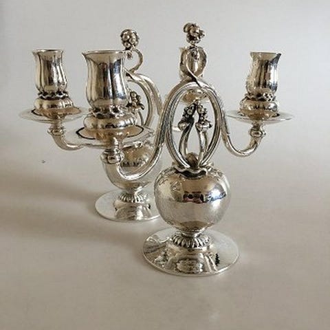 Et par Georg Jensen Konge toarmede kandelabre i sterlingsølv