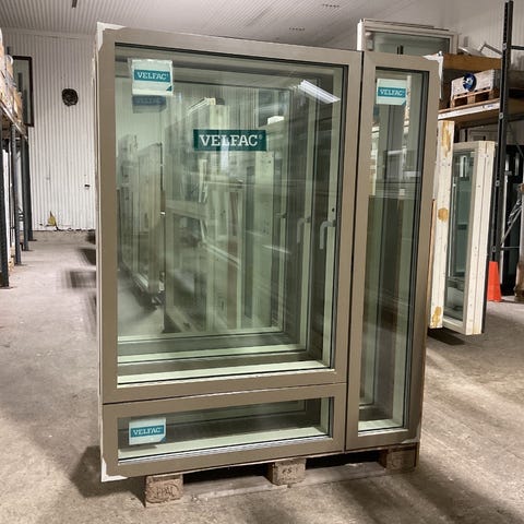Ubrugt Velfac vinduesparti, Alu/Træ, 3 lag glas, Termo, Sidehængt/Fastkarm Varenummer: 359