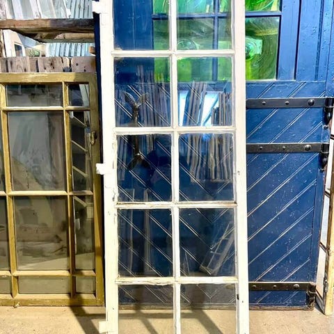 Klassisk, buet 8-ruders vinduesramme med flere ruder i originalt, gammelt glas. Fremstår med sundt træværk, slidt maling samt behov for vedligeholdelse af kit. Kan mangle op til to ruder.