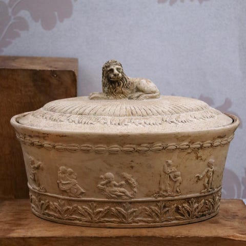 Polykrom dekoreret Stralsund terrin med underfad. Låggæk i f