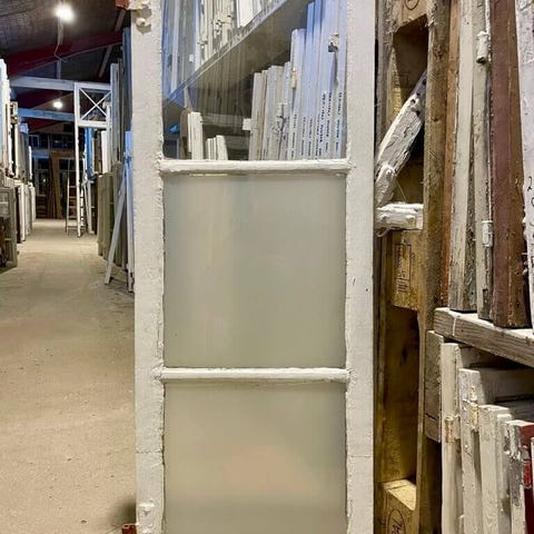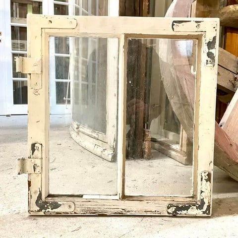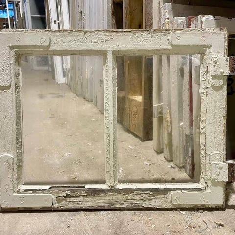 Originalt 2-ruders kernetræsvindue uden karm. Med lodret sprosse og små ruder. Træværk er sundt, men vibduet bør have ny maling og kit.