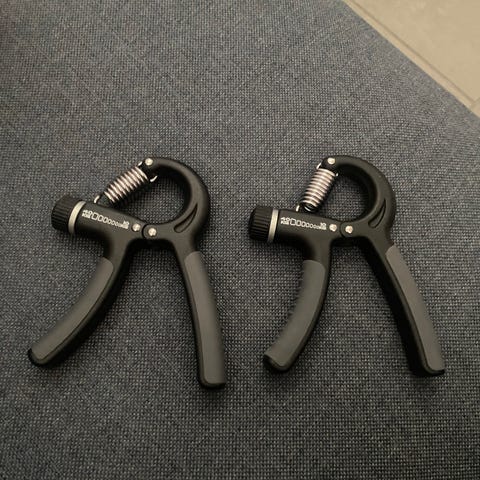 Håndtræner med Justerbar belastning Sælges enkeltvis så du skal bestille 2stk hvis du vil træne begge hænder på en gang. Tag din træning med på farten på vej til studie eller job og træn de små muskelgrupper, som jo skal klare rigtig mange ting hver dag og derfor har brug for at blive styrket. Desuden en yderst effektiv måde, at komme lidt væk fra din smartphone og gå online med dig selv i stedet for. En hånd træner, også kendt som en håndgrebstræner eller håndstyrketræner, bruges til at styrke og træne musklerne i hænderne, fingrene og underarmene. Her er en simpel guide til at bruge en håndtræner: Vælg den rigtige hånd træner: Der findes forskellige typer håndtrænere på markedet, herunder fjederbaserede, justerbare og trykaflastende hånd trænere. Vælg en, der passer bedst til dine behov og præferencer. Hold hånd træneren korrekt: Placer din hånd omkring håndtræneren og sørg for, at grebet er behageligt og sikkert. De fleste hånd trænere har ergonomiske håndtag, der giver dig et godt greb. Start med passende modstand: Mange hånd trænere har justerbar modstand, enten ved hjælp af en drejeknap, fjederindstilling eller ved at skifte modstandsstriber. Start med en modstand, der føles passende for dig og gradvist øge modstanden, efterhånden som dine muskler bliver stærkere. Udfør grebsøvelser: Med hånd træneren i hånden kan du udføre forskellige øvelser for at træne dine hånd- og underarmmuskler. Nogle almindelige øvelser inkluderer: Greb og hold: Klem håndtræneren med fuld kraft og hold spændingen i et par sekunder, før du løsner grebet. Gentag dette flere gange. Fingerindividuelt greb: Klem kun med en finger ad gangen, mens de andre fingre holdes let strakte eller løse. Gentag dette for hver finger. Bøjninger og strækninger: Klem hånd træneren gentagne gange, som om du klemmer en bold, og stræk derefter fingrene og åbn hånden fuldt ud. Varieret greb: Udfør øvelser med forskellige greb, som f.eks. et lukket greb (klem håndtræneren helt), et åbent greb (klem kun delvist) eller et pinch greb (klem hånd træneren mellem fingerspidserne og tommelfingeren). Træn regelmæssigt: For at opnå resultater er det vigtigt at træne med hånd træneren regelmæssigt. Start med et par minutters træning om dagen og øg gradvist træningstiden, når dine muskler tilpasser sig. Pas på overanstrengelse: Som med enhver træning er det vigtigt at lytte til din krop og undgå overanstrengelse. Start med let til moderat modstand og undgå at presse dig selv for hårdt, da det kan føre til overbelastning eller skade.