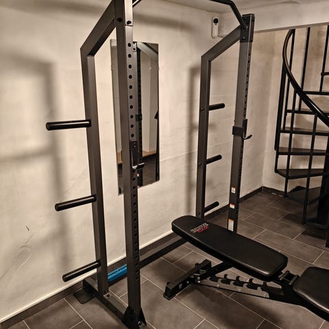 Fritstående Half rack TITAN LIFE PRO Fritstående Half Rack er et multistativ, som kan bruges til mange forskellige øvelser som bl.a. chin ups, squats og ground lift. Stativet har 2 holdere til vægtstænger og holdere til træningselastikker og power bands, hvis du skal have ekstra belastning på i din træning. Stativet har plads til opbevaring af vægtskiver og der er plads til en træningsbænk, så du f.eks. kan træne bænkpres. Leveres usamlet. Der medfølger safety bars, som er robuste og hurtige at justere på dit rack. De beskytter dig mod vægtstangen, hvis du mister balancen under træningen. Der medfølger J-hooks, så du nemt og hurtigt kan skifte øvelser eller tilføje vægt til baren. Krogene er stærke og holdbare. Du kan indstille krogene uden at bekymre dig om de vil holde, når du lægger stangen væk. MODEL NAVN TITAN LIFE PRO Half Rack BRAND A-Å TITAN LIFE VARENUMMER 400-800094 PRODUKTTYPE Kommercielt Produkt MAX. BELASTNING KG 300 MATERIALE Stål % MONTERET 90 OPSTILLET MÅL H X B X L (CM) 250 x 188 x 181 EMBALLAGE MÅL H X B X L (CM) 38 x 74 x 244 BRUTTOVÆGT KG 150.00
