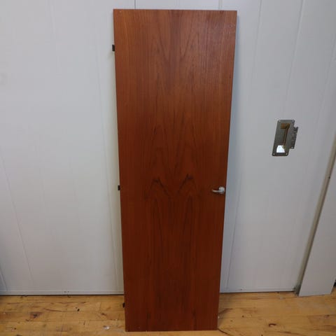Højre hængt låge i teak/mahogni med greb. Fra gammelt forramme skabssystem, hvor hængsel delen fra rammen mangler. Kan varierer lidt i udseende.