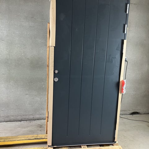 Pladedør med teaktræ lister 88x209 Pris kr. 2150,-