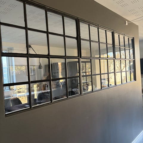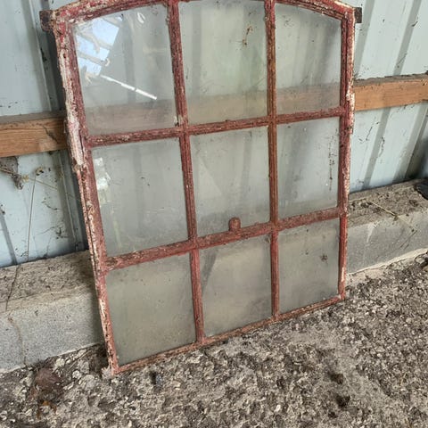 Gammelt støbejerns vindue fra en industrihal med enkelt lags glas, der kan være defekt glas og rust. Der er mulighed for at åbne en del af vinduet. Se billederne.