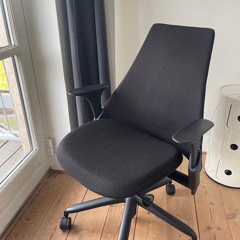 Sayl kontorstol med armlæn fra Herman Miller er en behagelig stol at have til de lange dage på kontoret. Kontorstolen har sædeglid, sædet kan indstilles i højden og ryglænet har justerbar lændestøtte.
