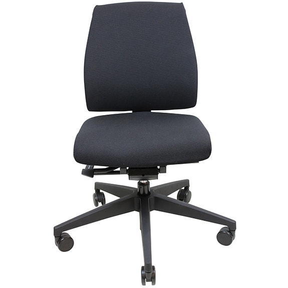 Randers Radius konferencestol med ryg i ahorn og nyt sort stof