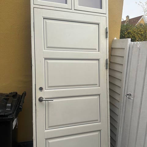Facade dør med oveparti i indfattet glas 106x231cm.