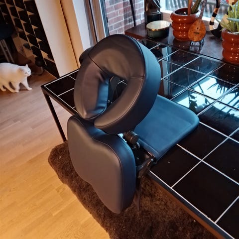 * Massagestol kan hurtigt foldes sammen for pladsbesparende opbevaring og transport