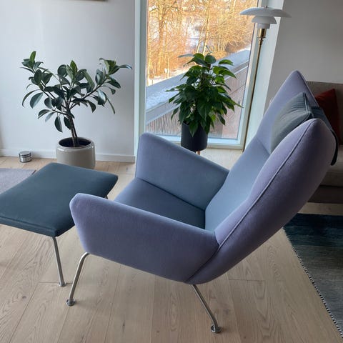 Hans J. Wegner Wing Chair CH445 med Skammel