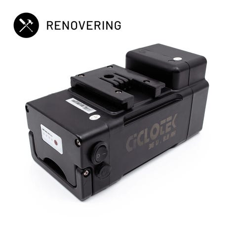 Hvad er en renovering?Ciclotek batteri renovering– OBS! Dette er en renovering, det betyder at vi udskifter batteripakken i din gamle batterikasse.Kan dit Ciclotek batteri ikke mere? Det kan være at det ikke kan oplade eller køre lige så langt som det plejer, eller måske er det bare gået helt dødt på grund af en vandskade eller andet. Vi er eksperter i renovering af batterier og i de fleste tilfælde er det meget billigere (op til 50%) at fixe dit gamle batteri fremfor at købe et nyt. Når du sender dit batteri til renovering hos os, åbner vi kassen op og udskifter de celler der sidder indeni. Vi laver altså en helt ny batteripakke specielt til dit batteri og genbruger din gamle kasse. Så du får et batteri tilbage der ligner dit gamle, men som er i helt tip top stand og med 2 års garanti.I mange tilfælde er der plads til at sætte en større batteripakke ind end der originalt kommer fra producenten, og derfor kan du vælge at opgradere dit batteri når du sender det ind så du kan køre meget længere på en opladning. Du vælger blot her på siden den størrelse batteripakke som du ønsker at vi sætter i (Ah).Er du i tvivl? Få svar på de mest almindelige spørgsmål via vores FAQ eller vores Renovering guide.Forvirret over teknikken bag? Vi har lavet en guide til dig der er i tvivl om hvad Ah / Amperetimer og Wh har af betydning for dit batteri - Bliv klogere på hvad BMS og Volt betyder i vores guide her: Hvordan fungerer et batteri? - Din guide til Ah og WhSpecifikationerInformationPrisVolt (V)36VBrandCiclotekModel-Passer til-BMS udskiftning--Ladestik udskiftning--Batteri typeLithium IonTilhørende oplader--Dimensioner-Specielle forhold-Kapacitetstest af celler-Sådan sender du dit batteri: