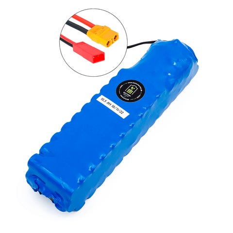 Nyt batteri til dit el-løbehjul.Har du mistet dit batteri til el løbehjul eller skal dit gamle udskiftes fordi det er i stykker eller måske bare ikke kan køre lige så langt som det plejede? Køb dit helt nye batteri her og få det med posten indenfor 1-3 hverdage.Specifikationer på batteriet:36v / 42v dc - 7,8 Ah eller 10,5AhBatterierne kommer med alle 4 nødvendige stik (XT60, XT30, JS og SM stik (så bruger du blot de to stik der passer til dit løbehjul og lader de andre være).Vær opmærksom på at hvis du skal bruge JS stik skal du undersøge hvilken vej den sorte og røde ledning går ind i stikket (se billederne ved valg af variant)GoRunner 10 Pro løbehjul bruger JS hun stik, med rød ledning i venstre side.GoRunner 8,5" Connect løbehjul bruger SM stik, med rød ledning i højre side.Dimensioner: 7cm bred, 4cm høj, 29cm langStand: helt nyVigtigt: Tjek dit JS-stik, så det passer perfekt!Når du køber et batteri til dit løbehjul, skal du vælge den rigtige variant for JS-stikket – og det er super nemt, når du ved, hvor du skal kigge! Vores batterier kommer med 4 stik: JS, SM, XT60 og XT30, men de fleste løbehjul bruger kun 2 af dem. Du bruger bare de stik, der passer til dit køretøj, og lader de andre være.Sådan vælger du det rigtige JS-stikTjek ledningerne: Kig på dit JS-stik og se, om den røde ledning går ind til højre eller venstre (den sorte følger med) i enten dit han eller hun JS stik. Vælg den variant, der matcher!Isoleringstape? Nogle gange er der sort tape rundt om ledningerne fra stikket. Peel det forsigtigt af øverst, så du kan se ledningernes retning ind i stikket.Husk at vende stikket rigtigt når du tjekker retningen. Hvis du har hun stikket på dit batteri skal den lille trekant vende opad, og hvis du har hanstikket skal de to metal poler vende opad når du kigger.Vi tilpasser det: Vi tilpasser stikkene på batteriet, inden vi sender det afsted til dig så det passer præcis til dit løbehjul. Uanset om du bruger JS- eller SM-stik, skal du vælge en JS-variant på siden. Hvis du ikke bruger JS-stikket, er det ligemeget, hvilket JS stik du vælger!Hjælp tæt på: Usikker? Send os et billede på mail til kundeservice@batteriservice.dk af dit batteri og et tydeligt billede tæt på af dine stik (Husk at fjerne det sorte isolerings tape inden), så guider vi dig til den rigtige valg!Guide til udskiftning af batteri på GoRunner PRO 10 løbehjul: GoRunner Pro 10" - Udskiftning af batteri