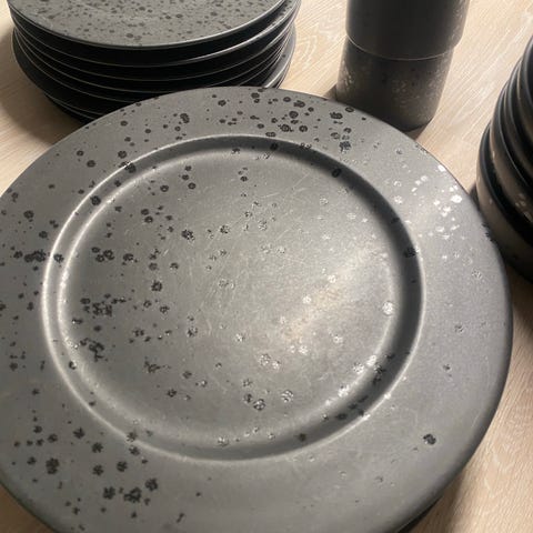 4 grå mindre frokosttallerkner 25kr pr stk SOLGT