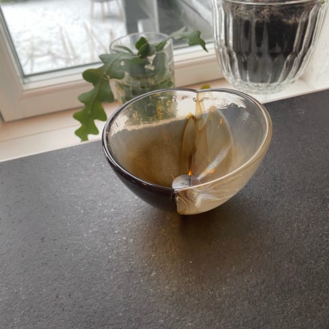 2stk super flotte Pernille Bülow glasskåle orange/brun ø10cm h7cm fast samlet pris 175kr