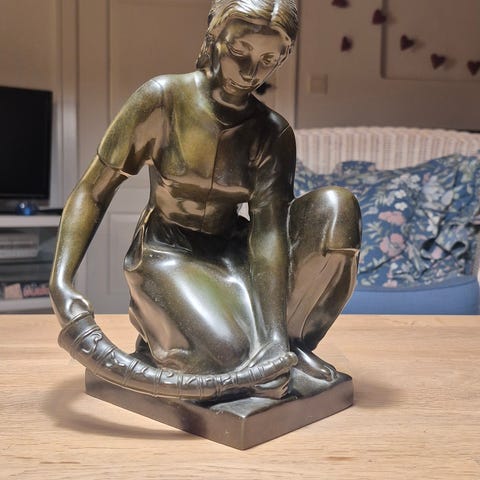 Skulptur 135 cm høj af ung pige,kunster ukendt.Ifølge overlevering har skulpturen været rekvisit i Liva Weel fil fra 1930. Den er ret tung, men ved ikke hvad materiale den er fremstillet af