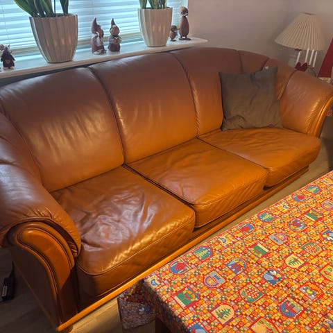 MEGA lækkert design sofasæt 3+2 sælges kun grundet sammenflytning. Står som nyt og lavet i egetræ og med ægte læder, møbler for livet. Se billede med ny pris. Kun stået i IKKE RYGER hjem.