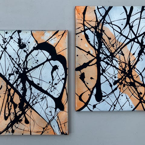 Abstrakt maleri på lærred lagt på Sort-ramme