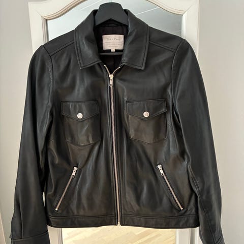 Kort grå læderjakke fra Theory med mange fine detaljer.