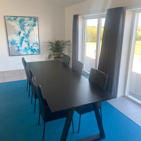 Bord ben og stole ben er i mat sort stål.