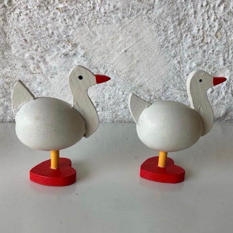Julegæs, Udført i hård plast. De er beregnet til at stå oppe på en hylde feks i køkkenet.