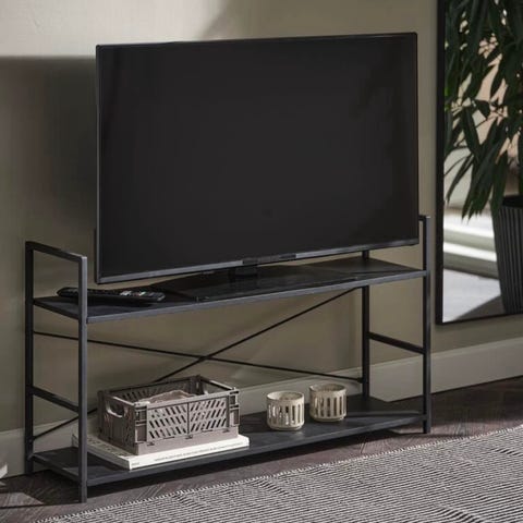 Jysk TV-bord i træ med flere opbevaringsrum. Ideelt til opbevaring af medieudstyr og dekorationer. Passer godt ind i stuen eller underholdningsområdet.