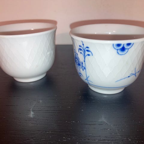 Fajance, Skål, Royal Copenhagen. Smukt sæt skåle i to farver og størrelser. Sælges både samlet og enkeltvis. Den gule skål fra Royal Copenhagen måler 8 cm i diameter. Den koster 150 kr. . Den grønne skål måler 7 cm i diameter. Den er fra det norske mærke, Matja. Den koster 200. Jeg sender ikke