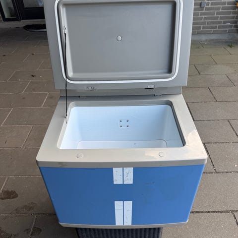 Køleboks med kompressor. Kan både køle og fryse, rummer 40 liter. Perfekt til bilferie eller camping. Kan bruges både med 12V og 220v - volt.