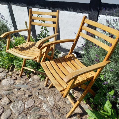 Flotte romantiske stole i smedejern, så de er tunge og flytter sig ikke for vinden.