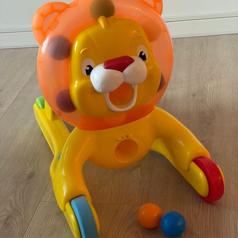 Sælger en 2-i-1 gåvogn, som både kan bruges som støtte til at gå stående og som en sidde- og køre-legetøj.