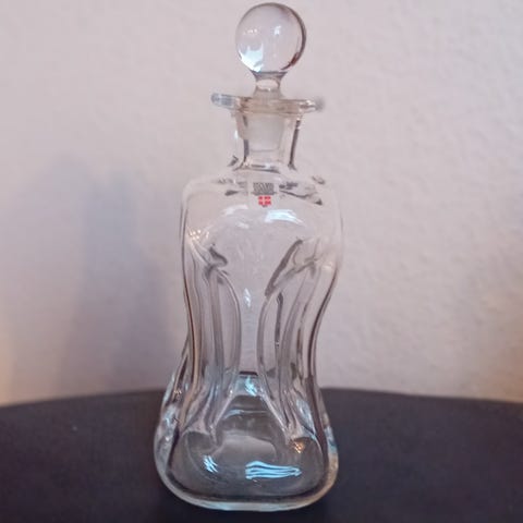 En klassisk klukflaske i mundblæst glas fra Holmegaard. Perfekt til snapsen på julebordet eller en hvilkensomhelst anden anledning 🤩 Højde 23,5 cm. Lidt forskellige brugsspor - lidt mørkt i en af de tynde “arme” og lidt små ridser.