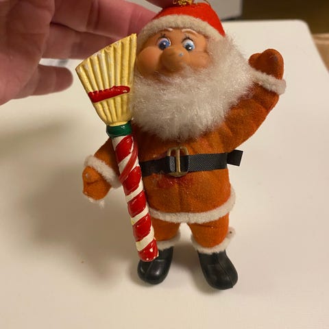 Juletræspynt, Julemand i ler, malet, fra 80’erne med let patina