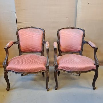 3 Rokokostole fra 1920'erne i mahogni og med nyere polstring. Fremstår pæne og solide uden nævneværdige brugsspor.