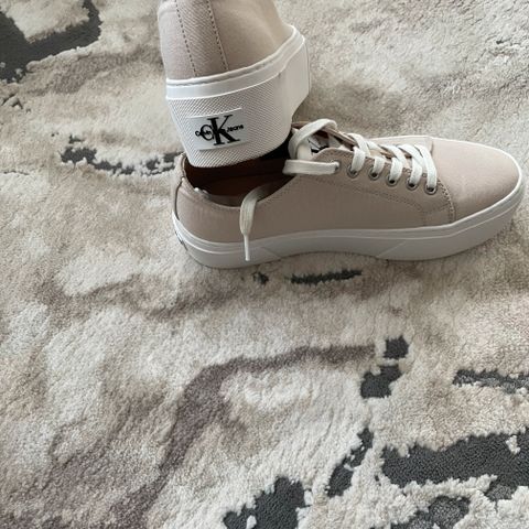Sneakers, str. 41, Calvin Klein, Hvid og Sort, Ubrugt, Sælger disse Calvin Klein sko da jeg ikke kan passe dem og heller ikke fik brugt dem. Jeg skulle have haft dem på til min konfirmation men valgte nogle andre så de blev ikke brugt. De blev købt helt nye til 1100 kr. og jeg har kun lige haft fødderne i dem og så har de så været ubrugt siden. Det eneste der er galt med dem er skoboksen der er en revne i.